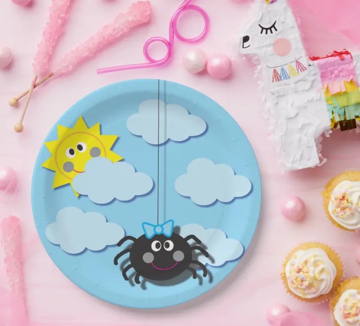 Add a touch of creativity to your summer events with the Itsy Bitsy Spider-Themed Party Plates! These customizable paper plates are perfect for serving dinner appetizers. And these plates are made from sturdy paper stock and can handle any meal. Your kids will enjoy creating these simple DIY paper crafts with you, featuring unique designs or photos that will impress your guests.