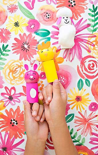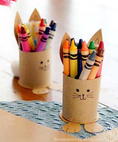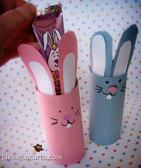 Create a cute bunny treat holder by gluing bunny ears and a tail onto a toilet paper roll. Fill the tissue roll with Easter candy or small toys for a fun surprise. To learn more about this, here.