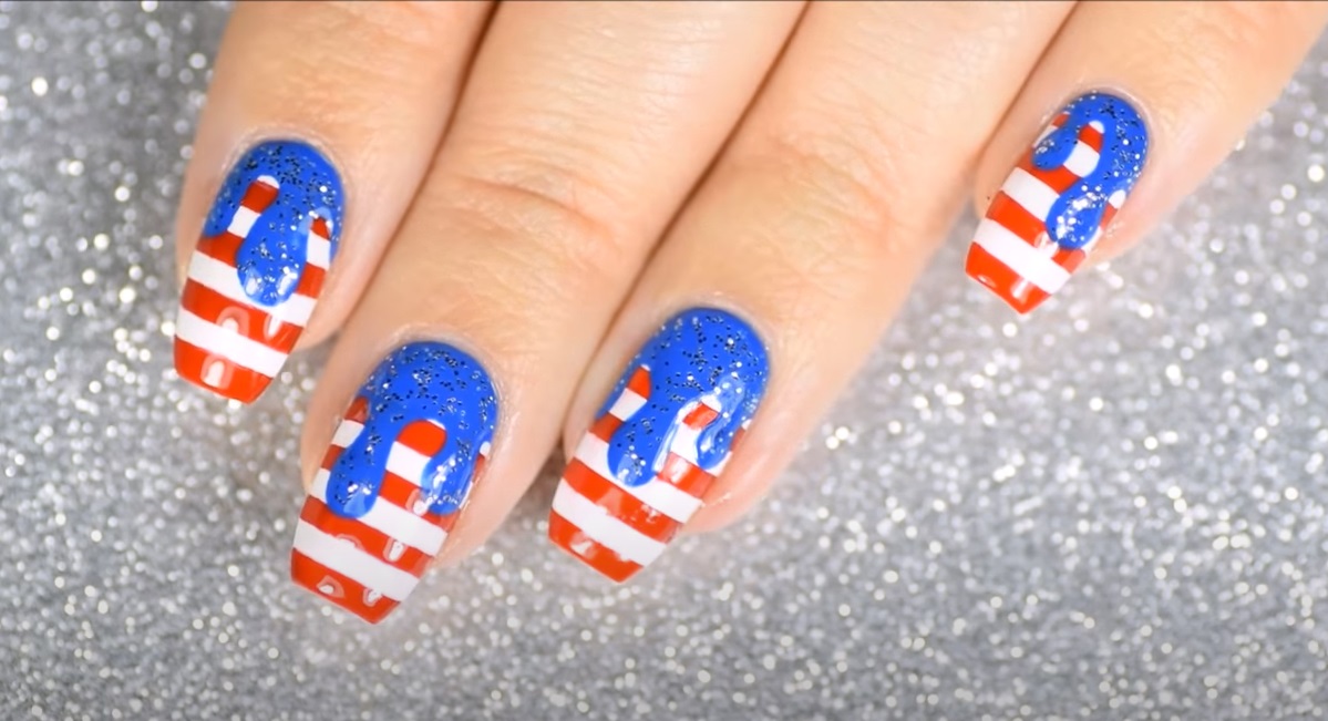 If you're someone who likes to bend the rules and stand out, Nails By Jema's Drippy Flag Nails tutorial is totally up your alley. It's like the American flag decided to have a little fun! It's super edgy and unique, just like you.