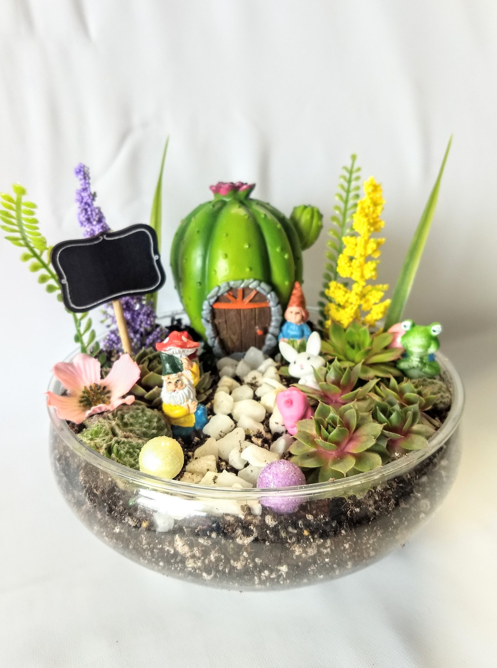 I'm totally obsessed with this charming Succulent Fairy Garden Terrarium. It's the perfect way to create your very own enchanting landscape complete with gnomes, a stone path, and a cute cactus house that is the center of attention. With live succulents and everything you need included, it's a wonderful gift idea for anyone who would love their very own fairy garden.