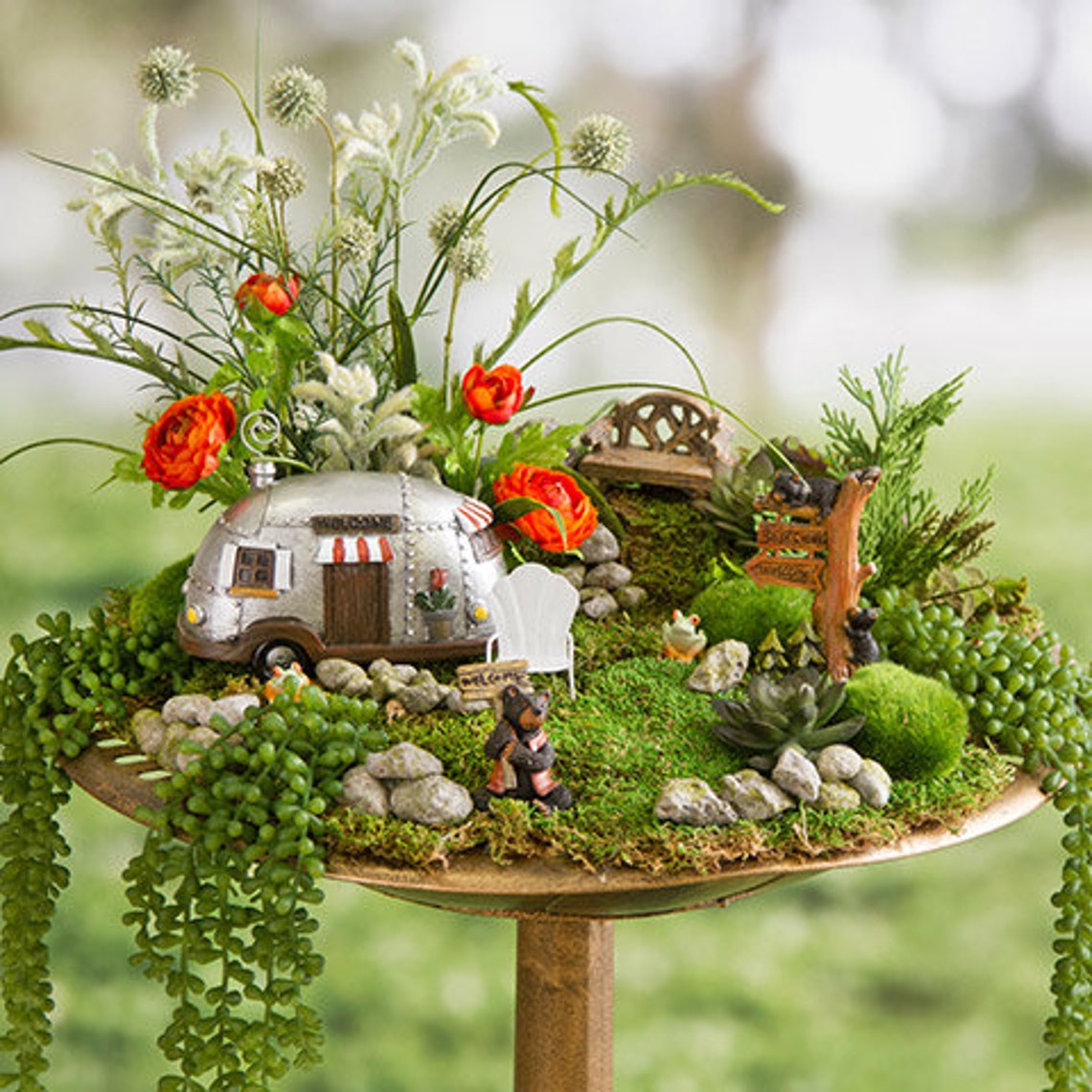 I love the idea of a camping-themed fairy garden! It's such a unique and creative twist on the classic fairy garden, and it's sure to bring joy and excitement to any outdoor space. This little garden is full of charm and whimsy, from the mini camper to the wooden chairs and beautiful flowers. And don't forget the little bear accessories - they add the perfect touch of cuteness! I can't wait to create my own camping-themed fairy garden and enjoy the wonder and magic it brings.