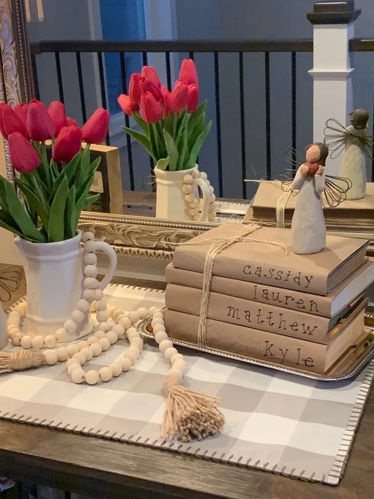 Mason jars are perfect for farmhouse style, and they’re so easy to make your own. Filling them with red or pink candles and adding a touch of twine or lace gives off a warm, romantic atmosphere that feels just right.