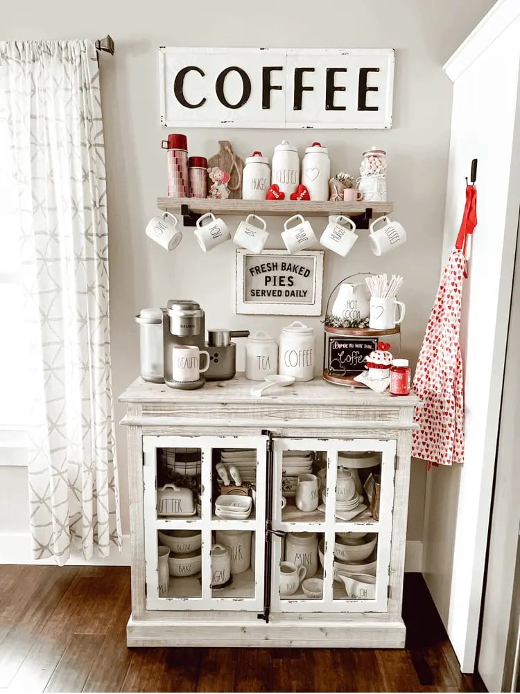 You know, no kitchen feels complete without a charming coffee corner, especially on Valentine’s Day! Add some romantic touches like mugs with sweet designs, heart-shaped sugar cubes, and a little cocoa dust for that perfect vibe. Simple, but it makes your morning coffee feel extra special and full of love!