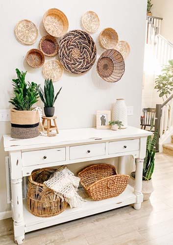 Baskets are an excellent way to add texture and warmth to a space. You can create a bohemian-inspired gallery wall using a mix of different baskets in various sizes and shapes. It's a unique and eye-catching way to add personality to your walls.