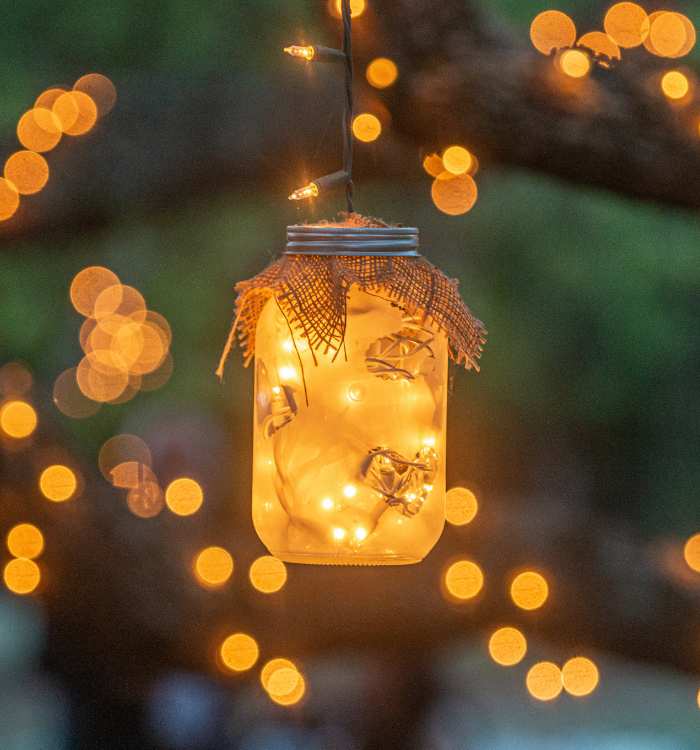 This one’s all about whimsy. We’re turning our jars into hanging lanterns.