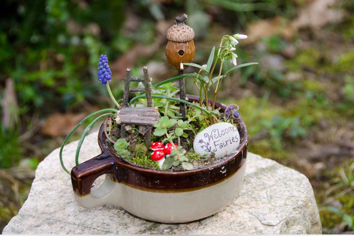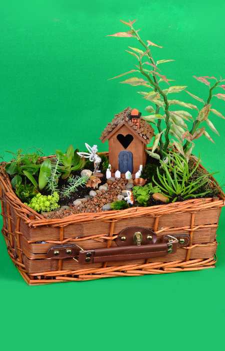 Then, I filled the container with soil and chose tiny plants that were ideal for a miniature garden. Succulents, miniature roses, and little ferns were my preferred choices because they required little care and gave my garden a magical feel. After that, I placed fairy houses, doors, and tiny fairy-sized furniture to create a comfy area for my fairies to unwind. Lastly, I included accessories such as lanterns and bird baths to make my fairy garden look even more lifelike.