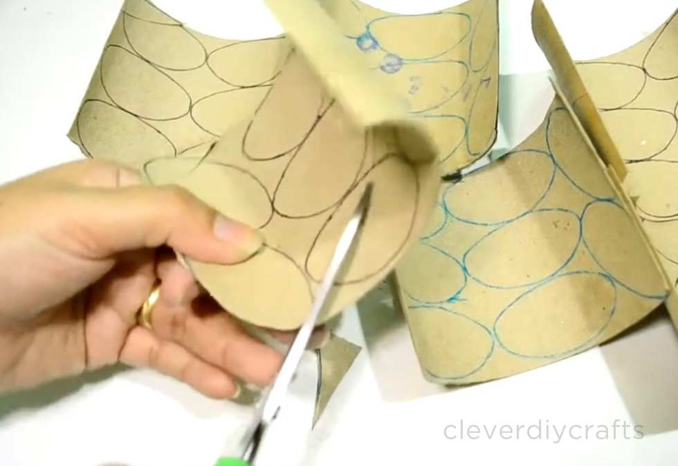 3. Once you've traced the petal shape onto all five tissue rolls, cut them out.