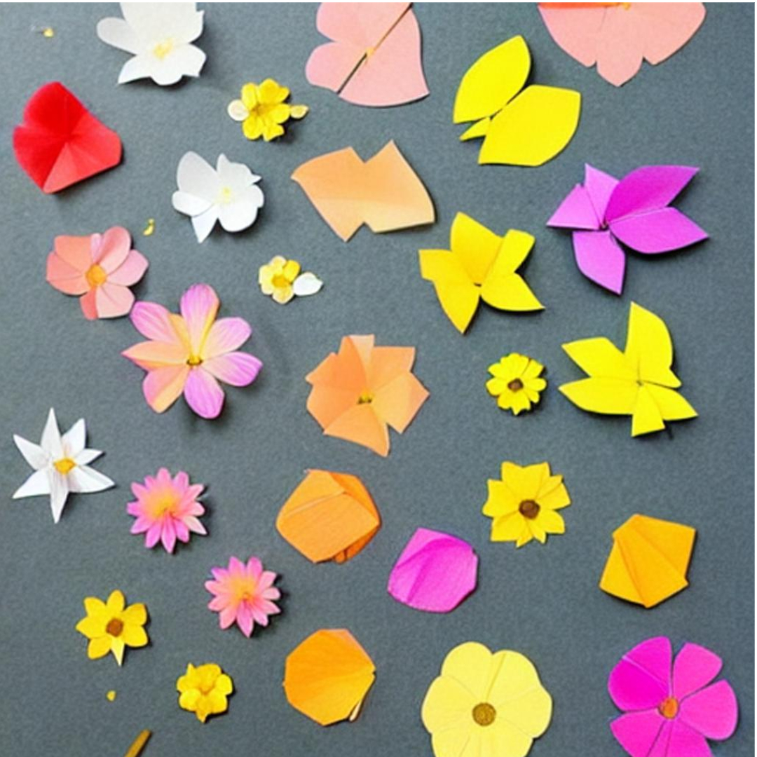 Step 1: Draw and cut out flower petal shapes from colored paper, such as daisies, roses, or sunflowers.