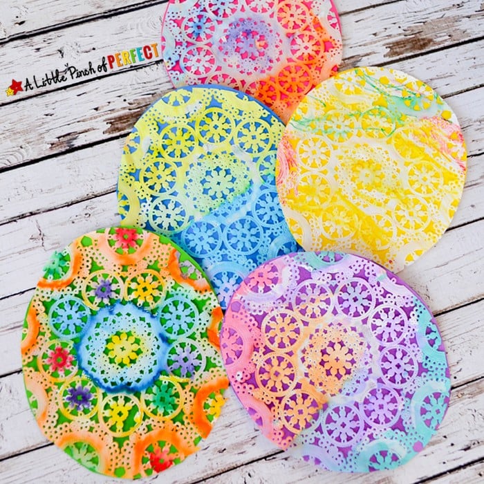 Gluing paper doilies onto egg cutouts and decorating them with pastel paints creates a delicate, lace-like effect, perfect for an elegant Easter display.